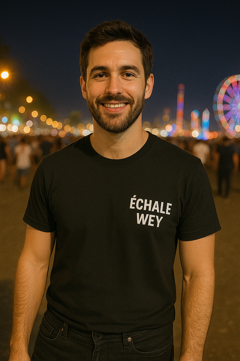 Let your attitude speak loud with this classic-cut black t-shirt featuring a bold minimalist design. Made from soft, high-quality cotton, this tee showcases the empowering phrase “ÉCHALE WEY” on the right chest
